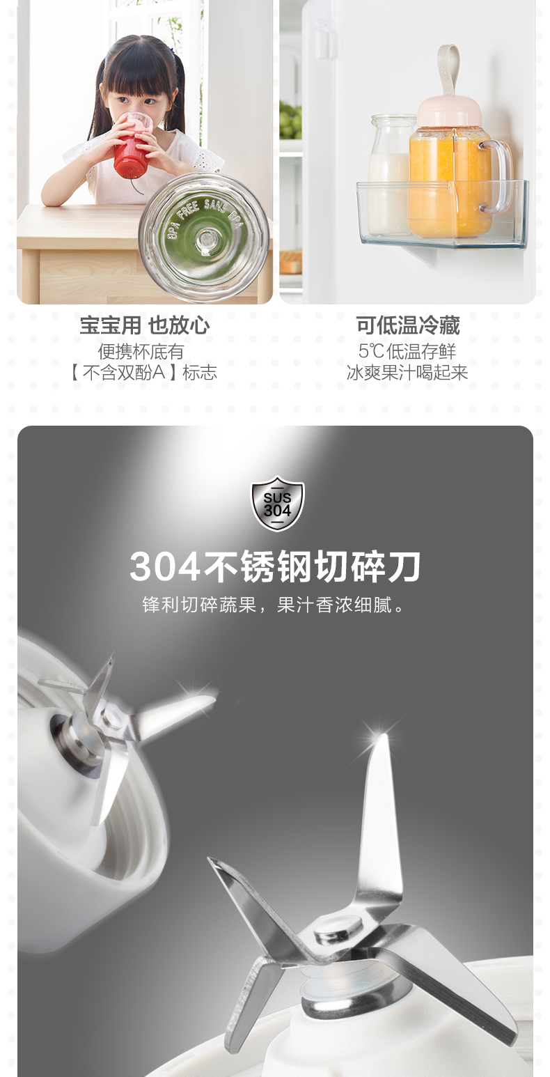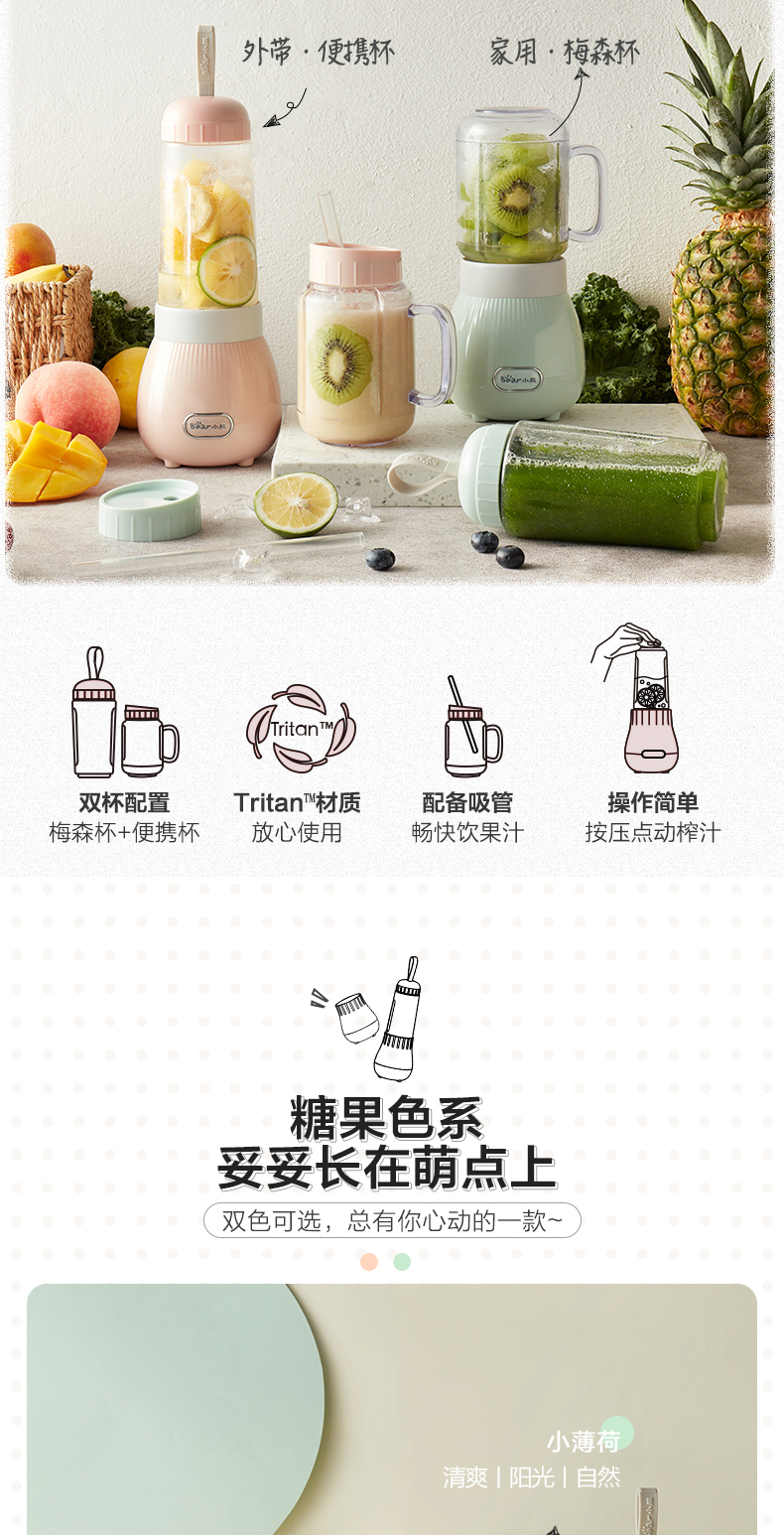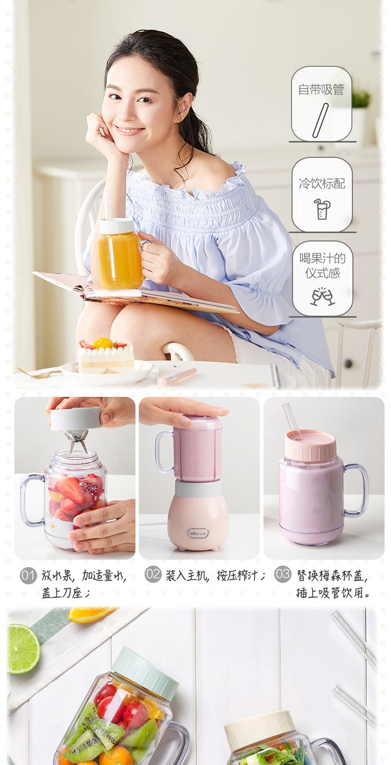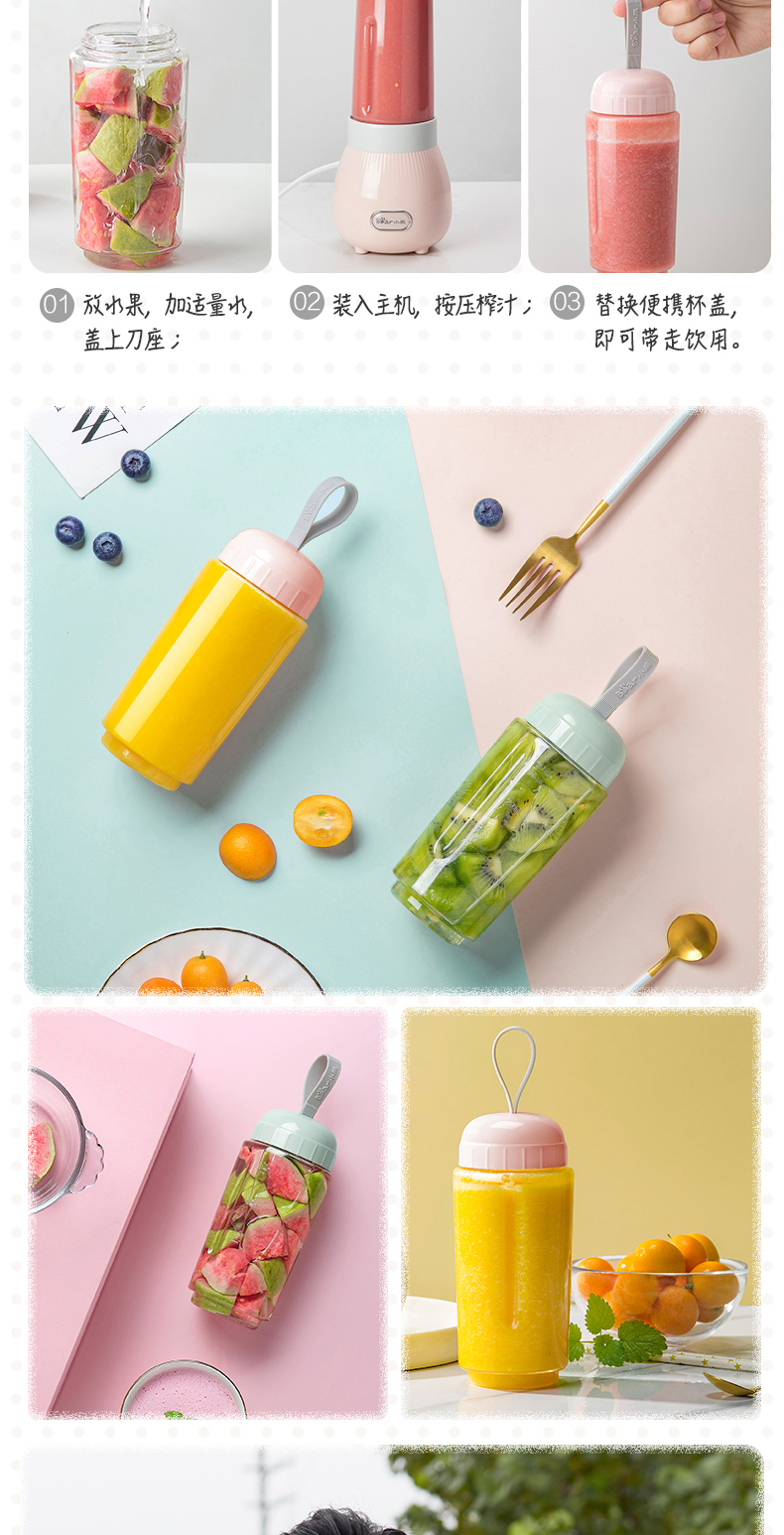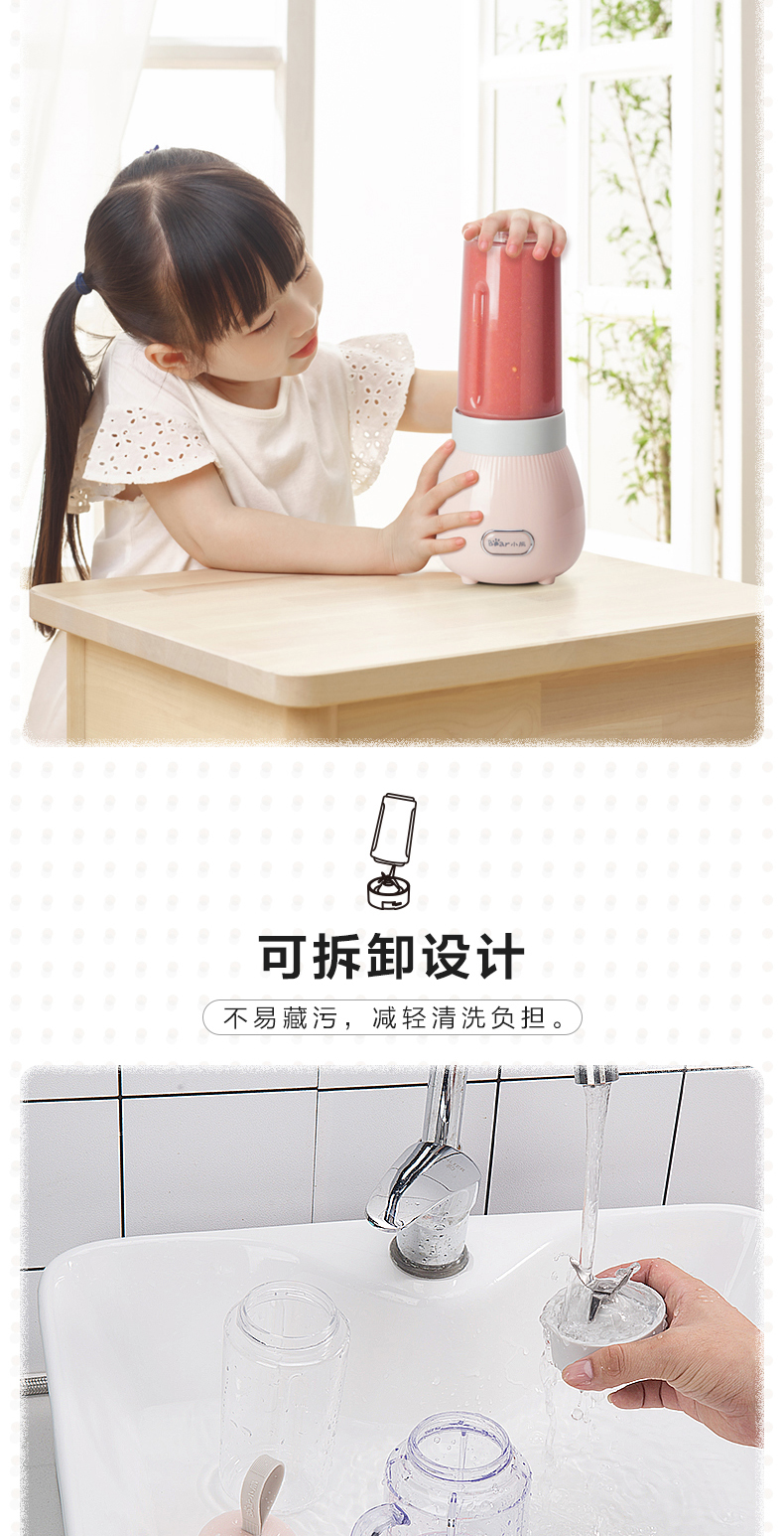 小熊Bear 榨汁机双杯配置按压点动榨汁1300+80+80ml粉色lghLLJ-C04W1