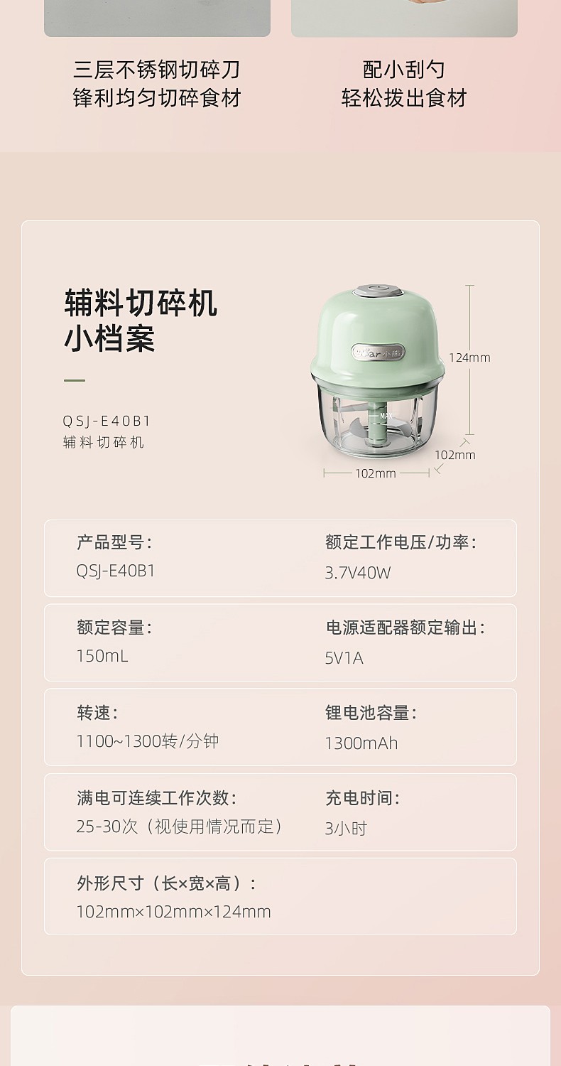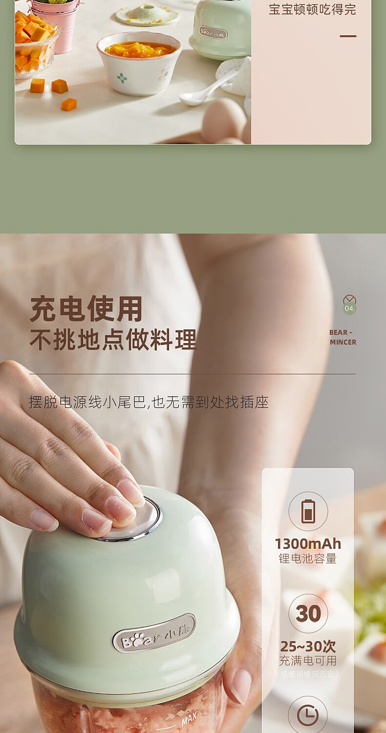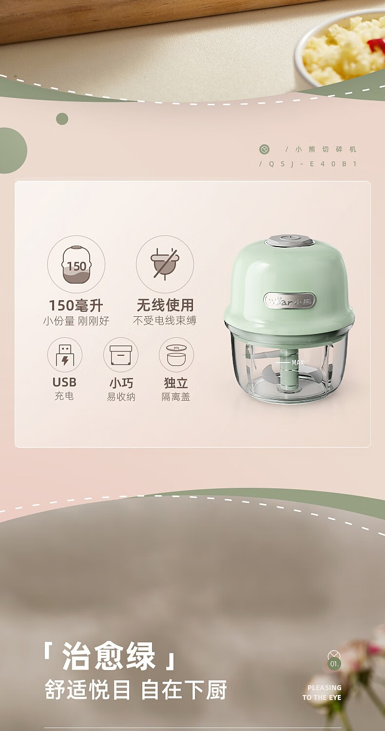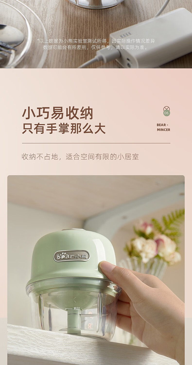 小熊Bear 料理机充电款无线多功能小型150ML浅绿色QSJ-E40B1