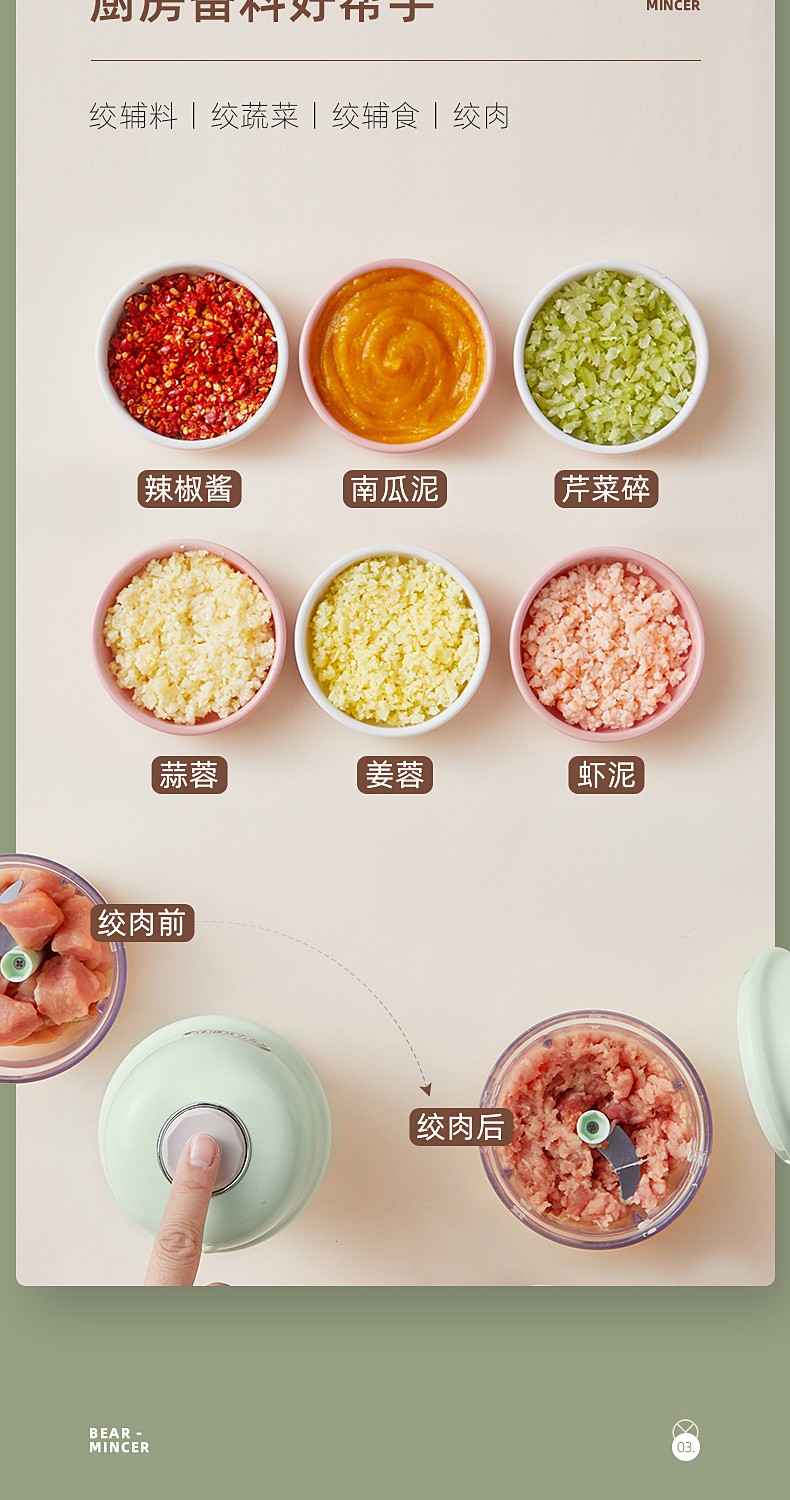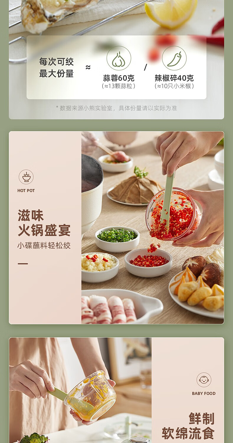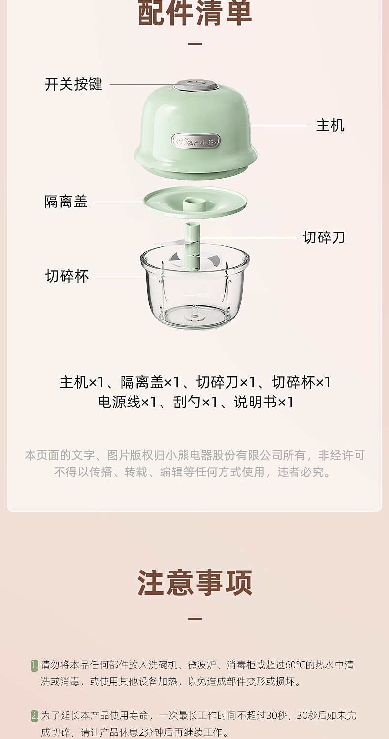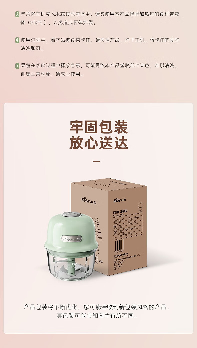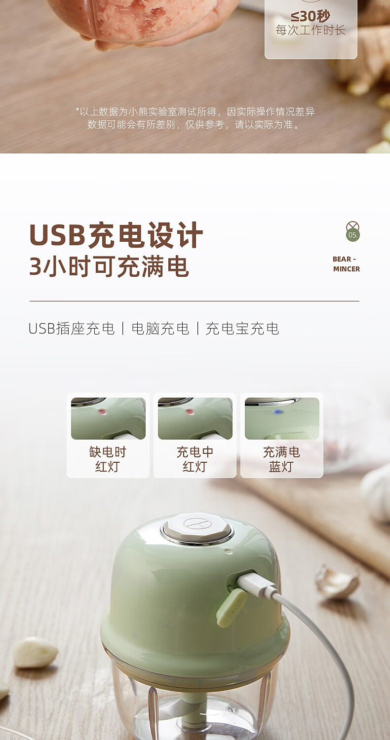 小熊Bear 料理机充电款无线多功能小型150ML浅绿色QSJ-E40B1