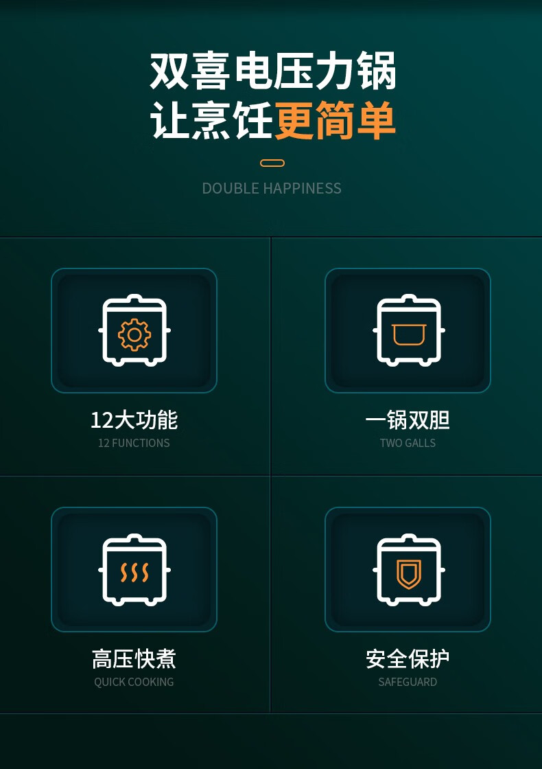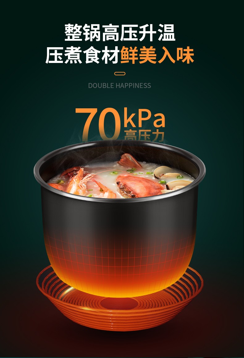 双喜DOUBLE HAPPINESS 5L电压力锅一锅双胆320*320*505mmDY-050EDY02