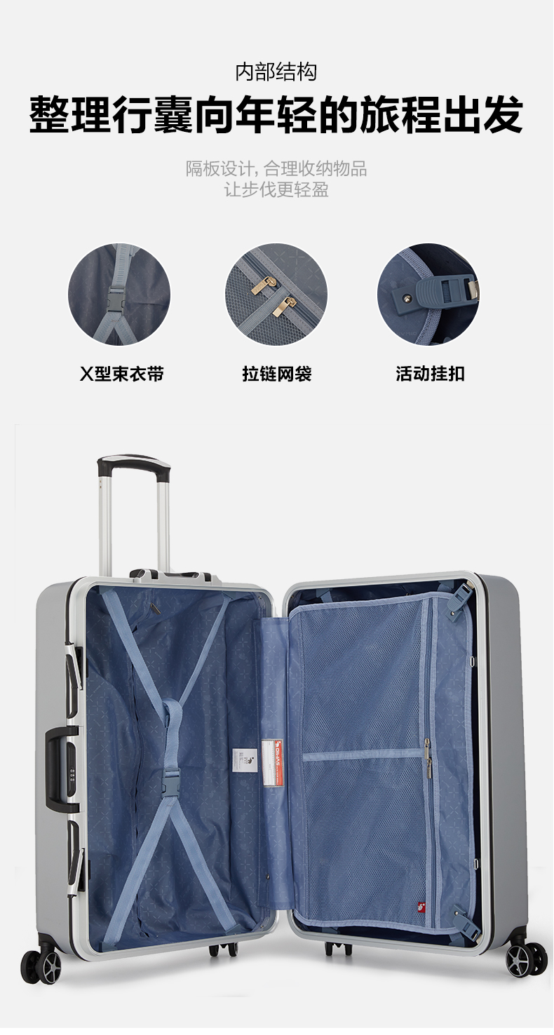 爱华仕(oiwas)24英寸铝框行李箱男士拉杆箱旅行箱小型女士登机箱万向轮学生密码箱OCX6606-24