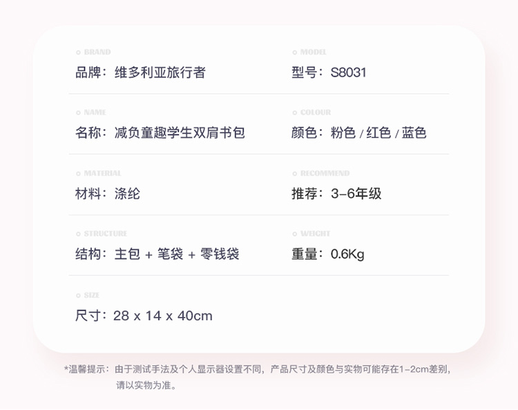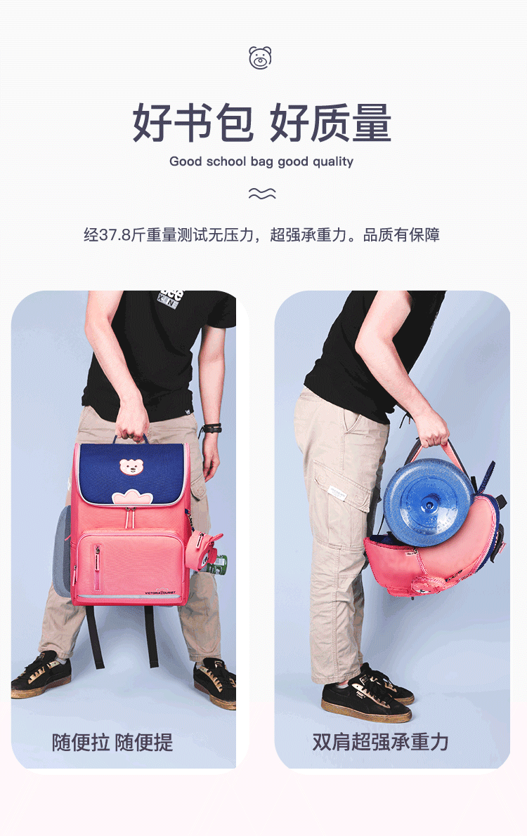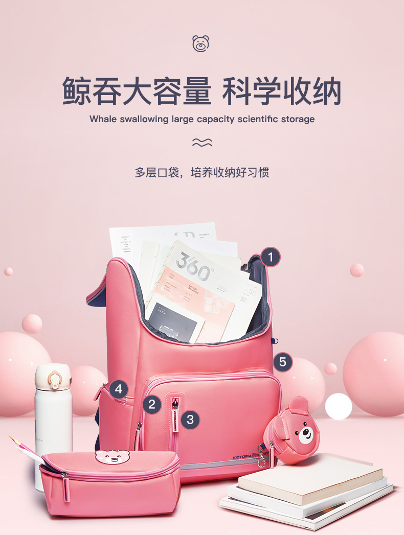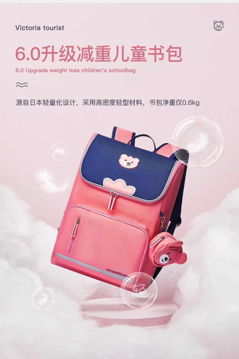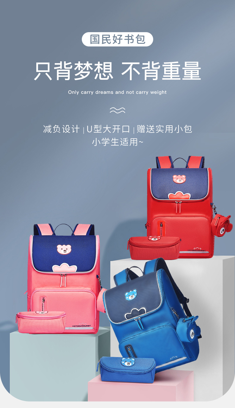 维多利亚旅行者小学生书包男女韩版儿童书包3-6年级轻便双肩背包大容量中学生书包8031三件套