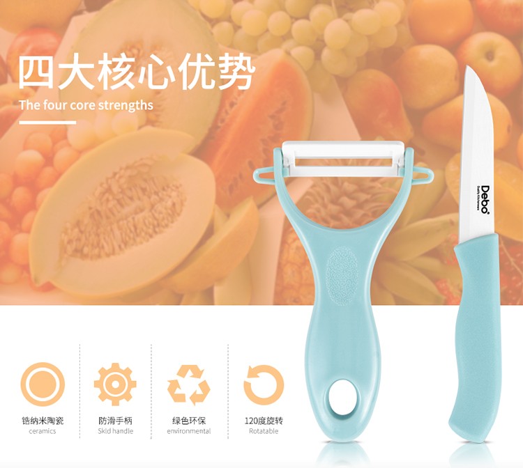 德铂Debo 佐伊陶瓷刀套装水果刀切菜刀切片切肉刀削皮刀厨房刀具套装DEP-682