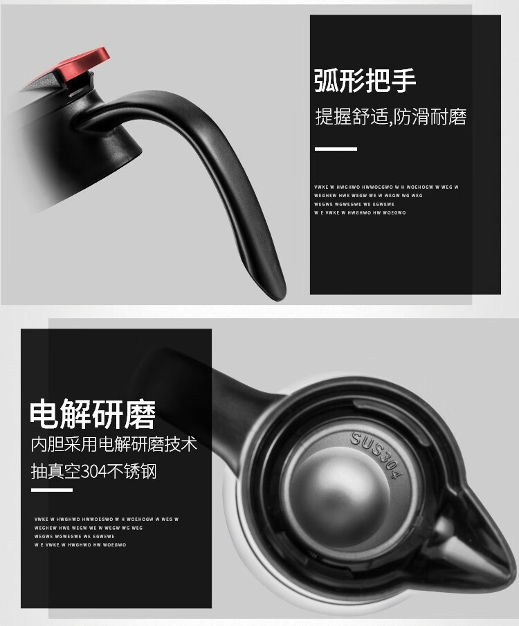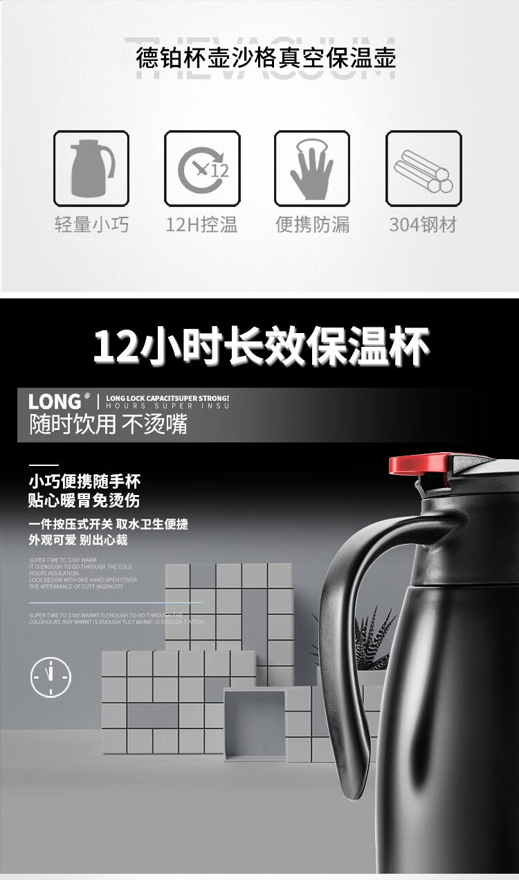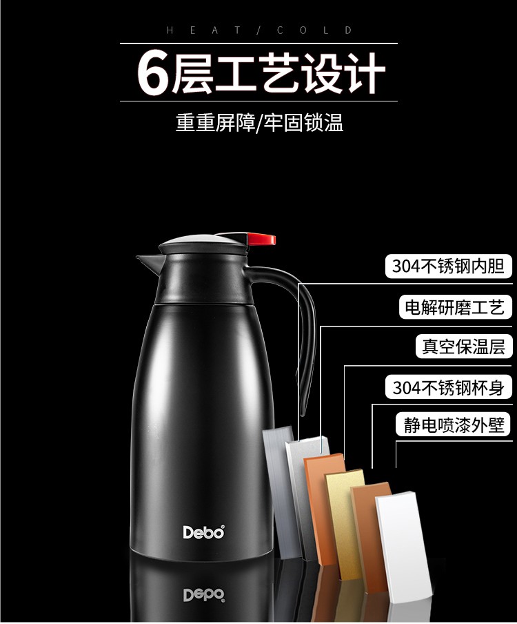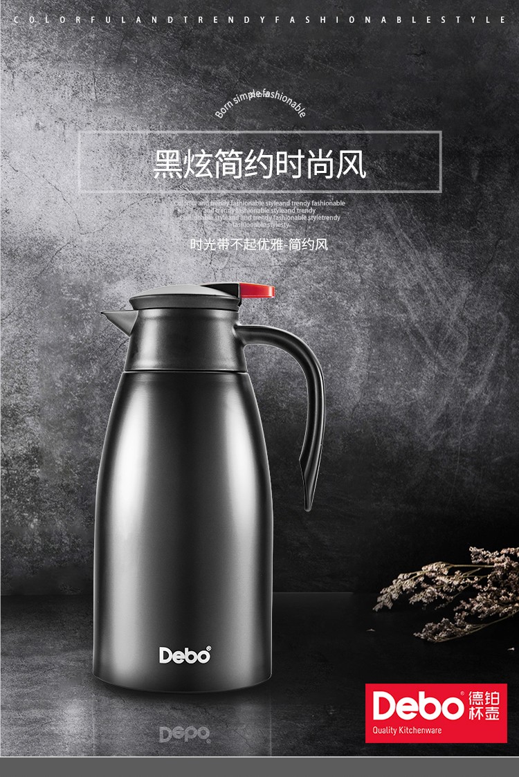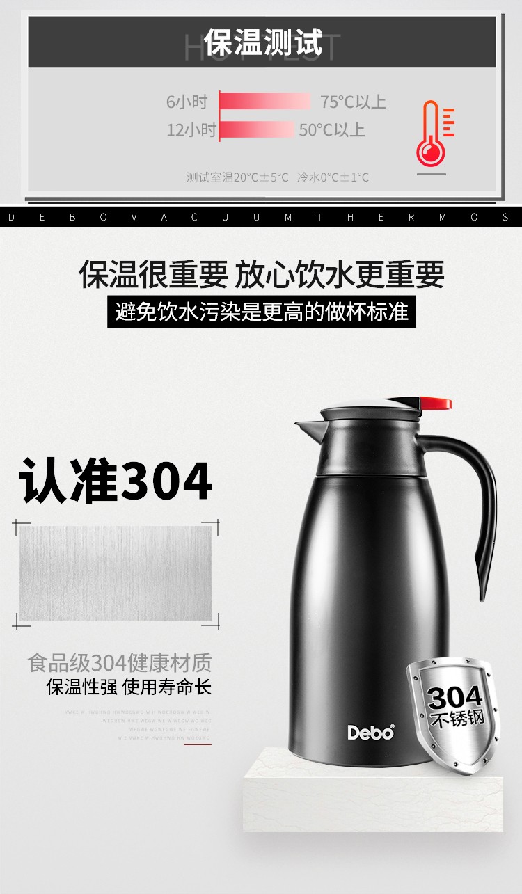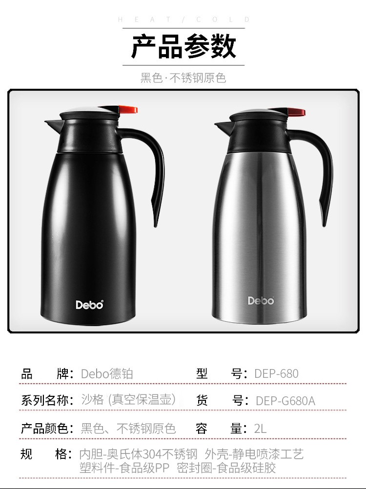德铂Debo 水壶304不锈钢真空保温壶2L 不锈钢色DEP-680
