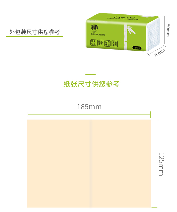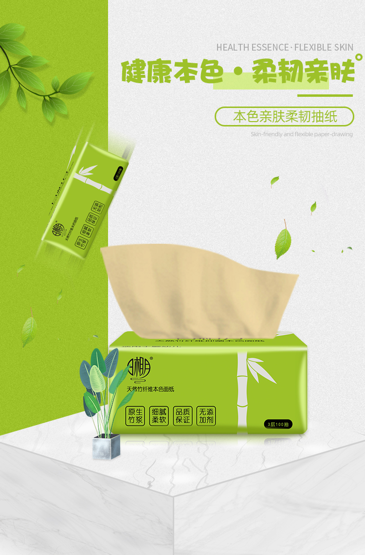 【QZ】日相月竹纤维本色抽纸S码3层100抽6包/提