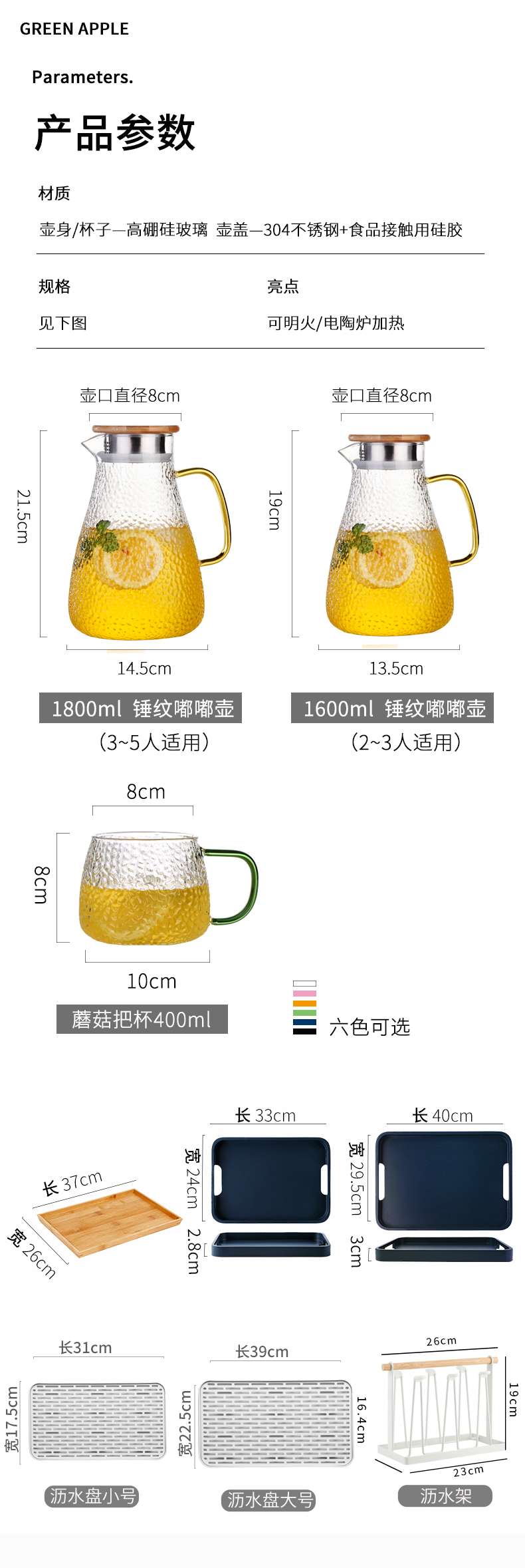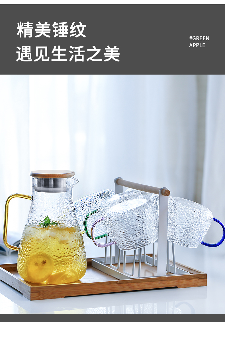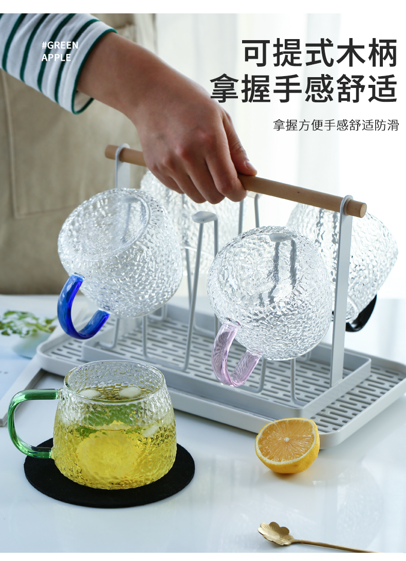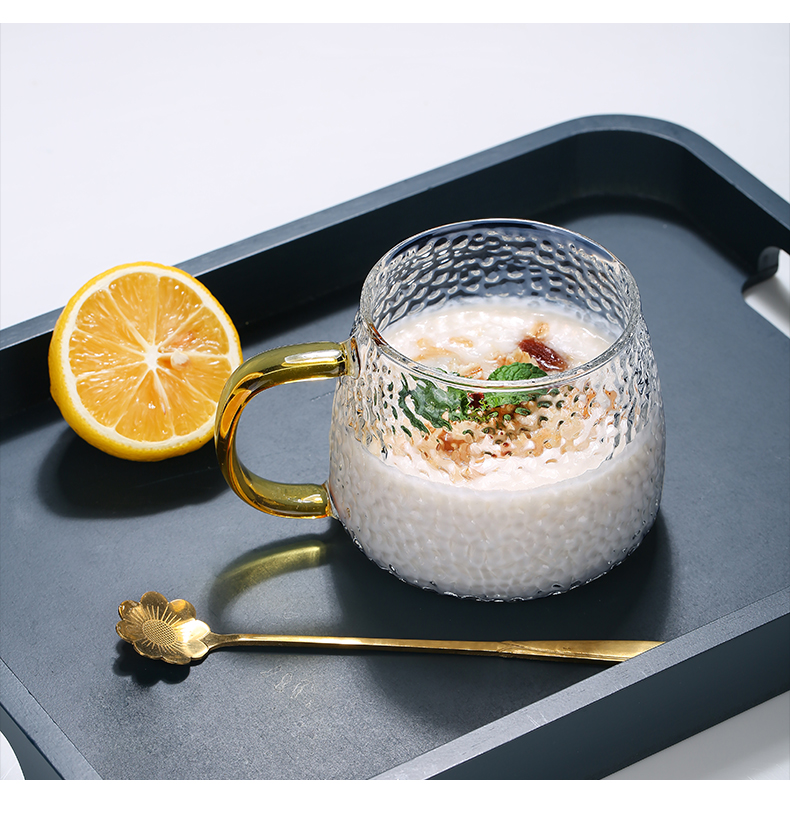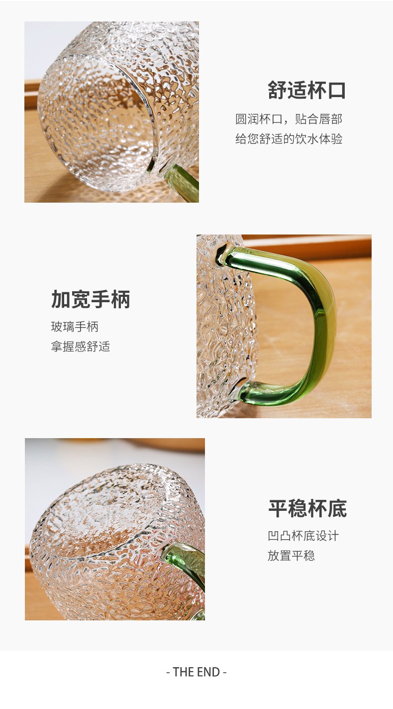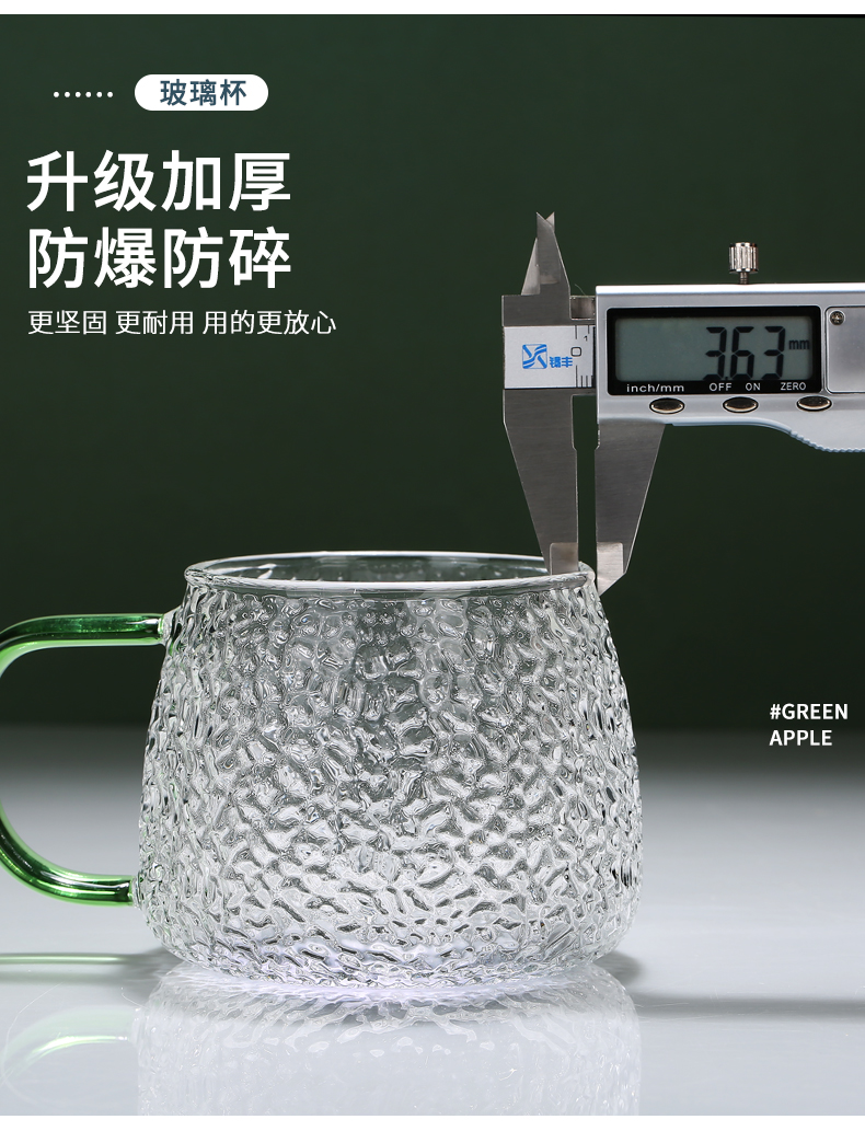 青苹果QINGPINGGUO 浮雕玻璃杯锤纹水杯耐热家用喝水带把手简约杯子GPB90
