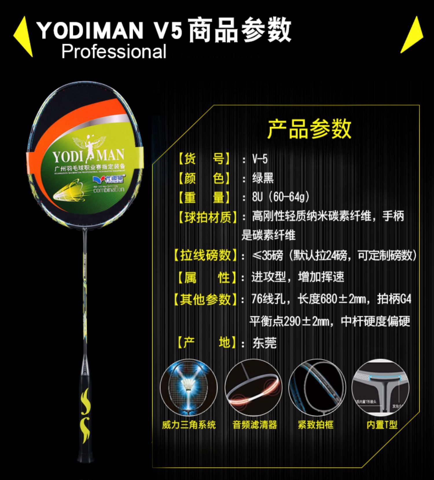 【QZM】尤迪曼羽毛球拍单拍进攻型扣杀35磅超轻全碳素纤维专业羽拍高磅