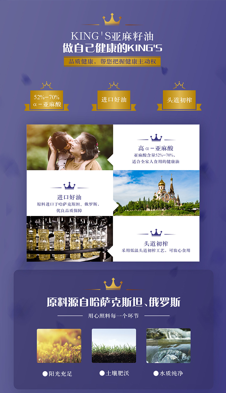 金龙鱼 KING'S 食用油 特级初榨 亚麻籽油礼盒装 750ml*2/盒