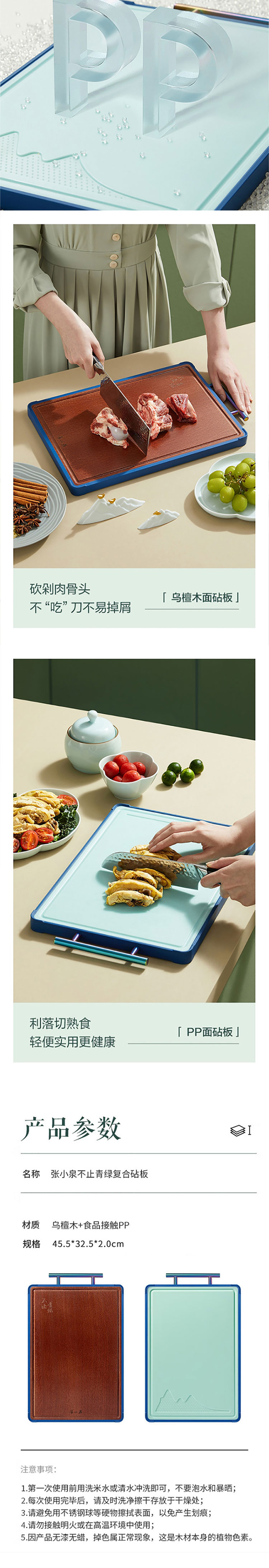 张小泉 乌檀木砧板+pp家用菜板案板双面砧板C52780100