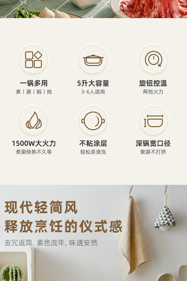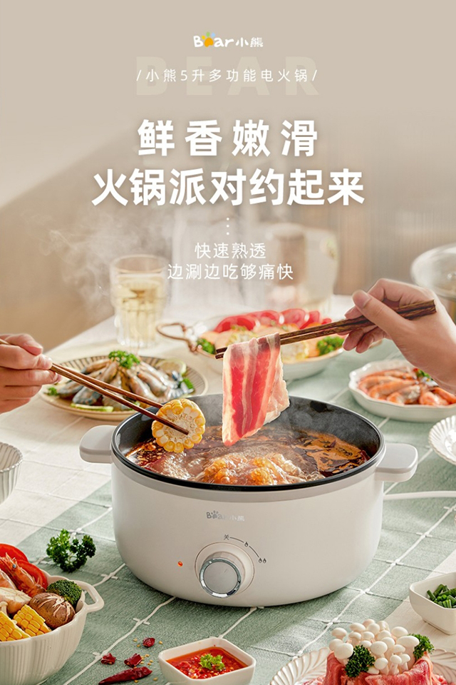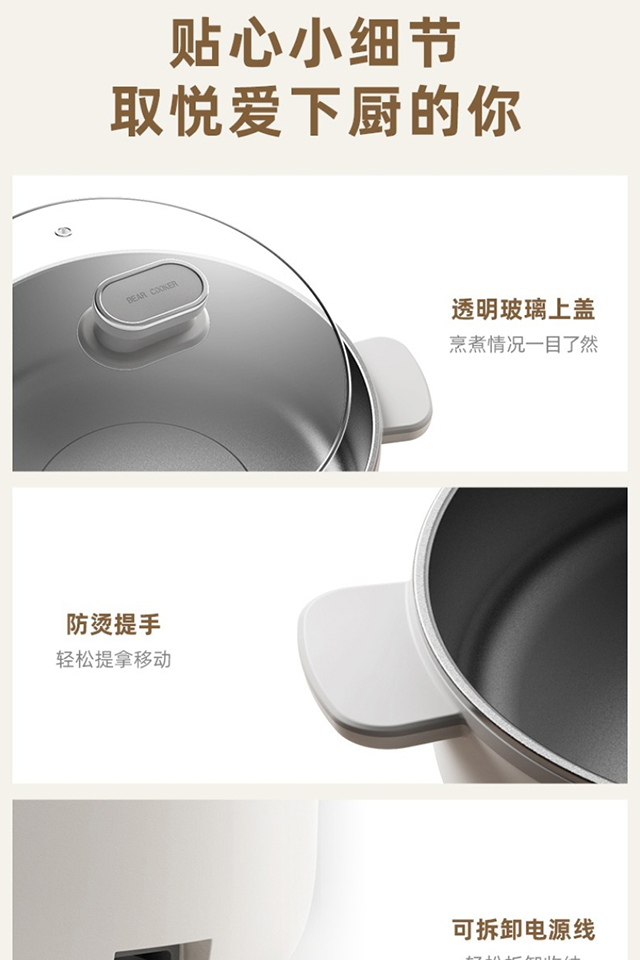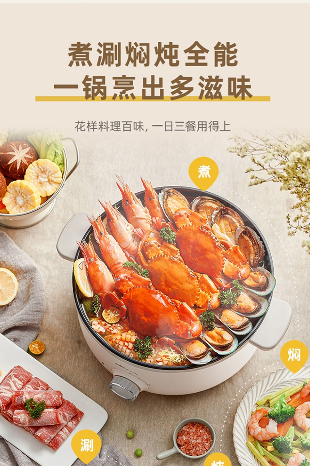 小熊(Bear)电蒸锅5L灰白色一体锅三层电煮锅DRG-D50C3