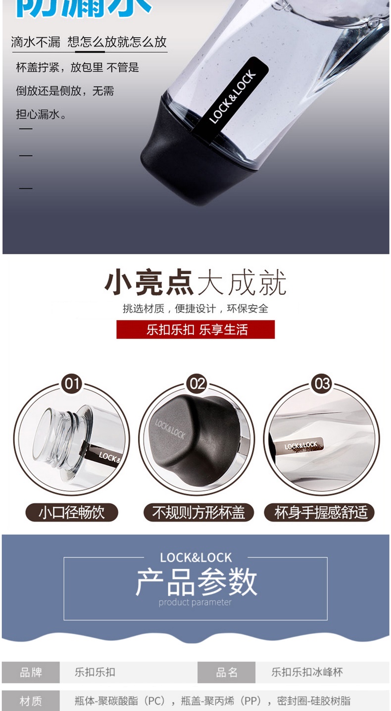 乐扣乐扣冰峰杯 夏季 塑料水杯 便携手杯 浅棕色 650ml /个