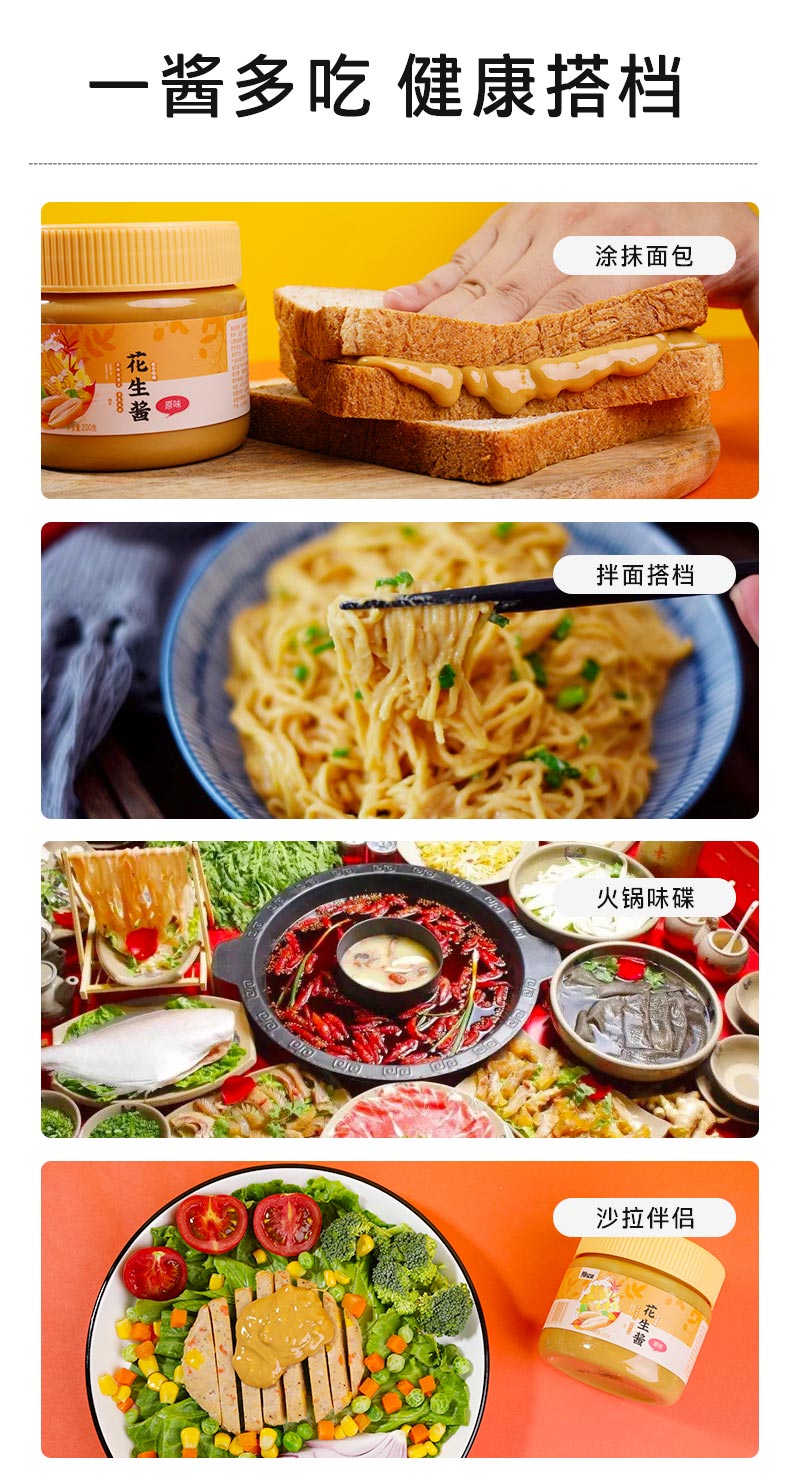 陶柒柒0添加颗粒花生酱原味+海盐味早餐面包酱拌面火锅蘸料200g*2罐