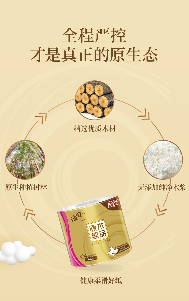 清风 原木纯品有芯卷筒卫生纸4层140g/卷*10卷