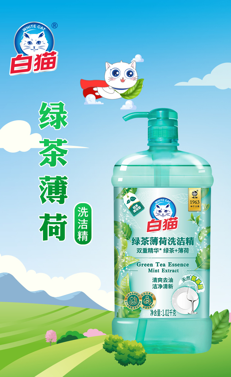 【XJ】白猫绿茶薄荷洗洁精1.02kg*2瓶