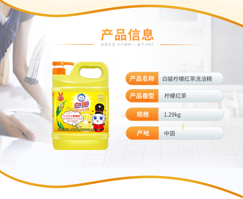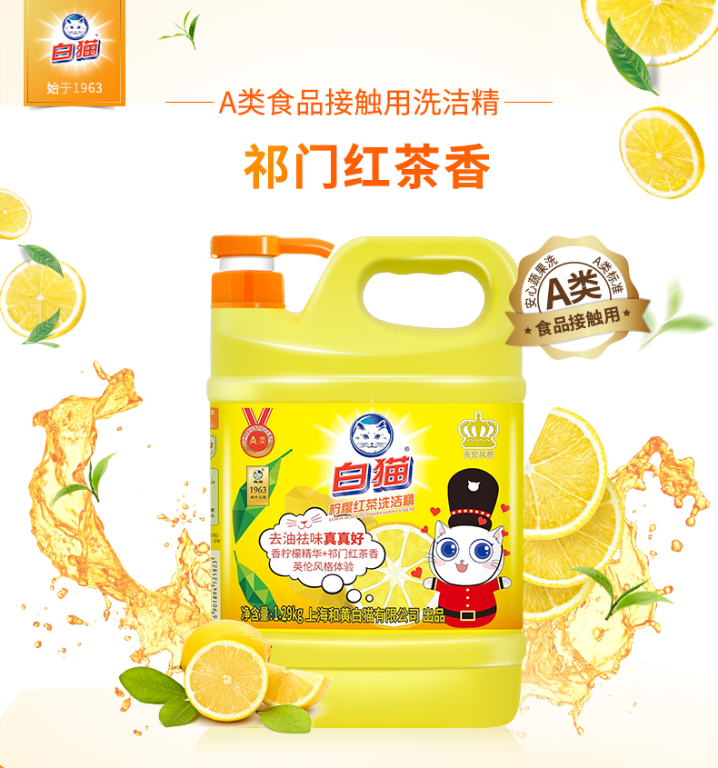 【XJ】白猫柠檬红茶洗洁精1.29kg*2瓶