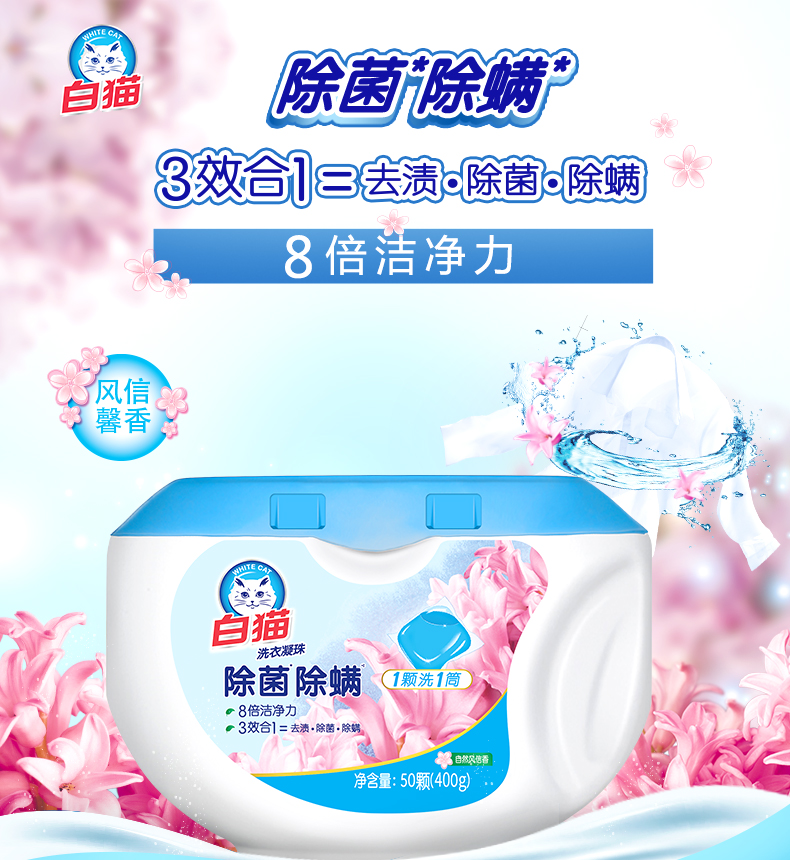 【XJ】白猫深层去渍洗衣凝珠洗衣液衣物清洁套装4.67kg
