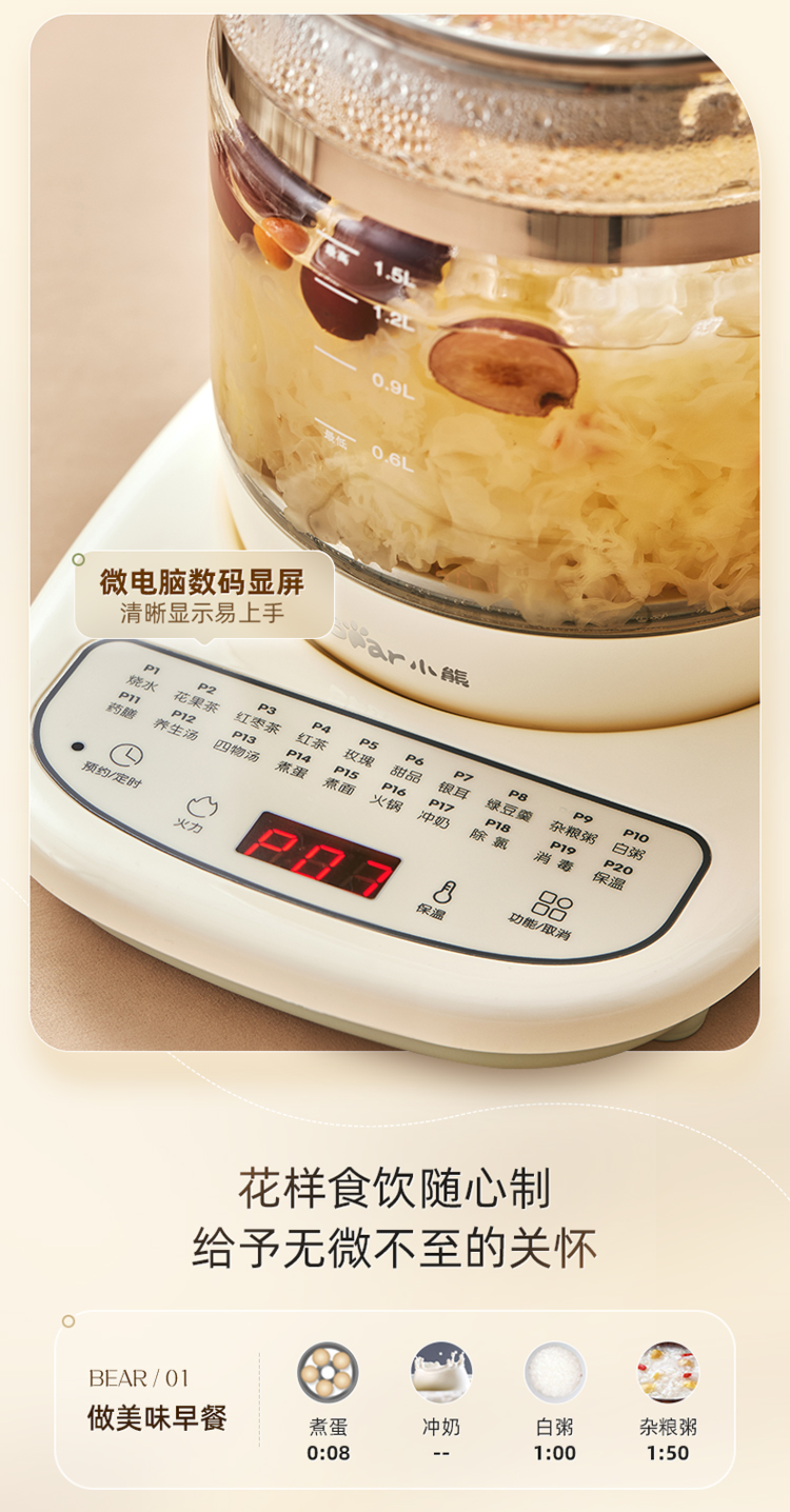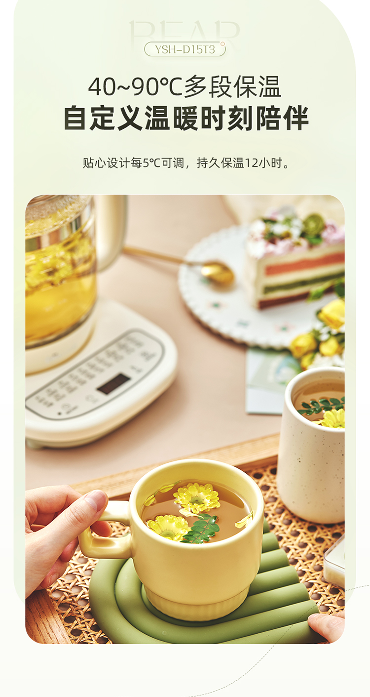 【HC】小熊(bear) 简约多功能养生壶1.5L YSH-D15T3