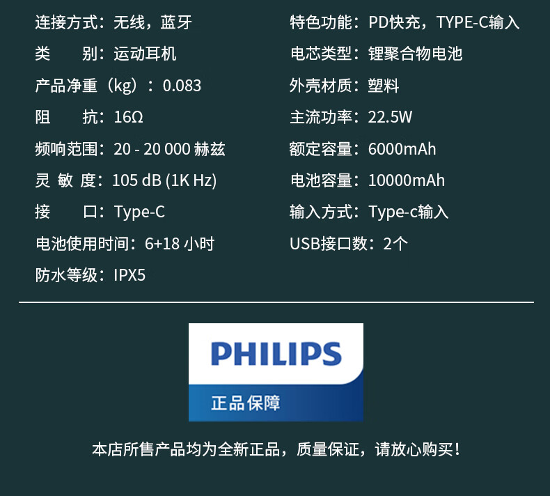 【HYY】飞利浦 移动电源+蓝牙耳机 畅享礼遇套装 JGYC-4