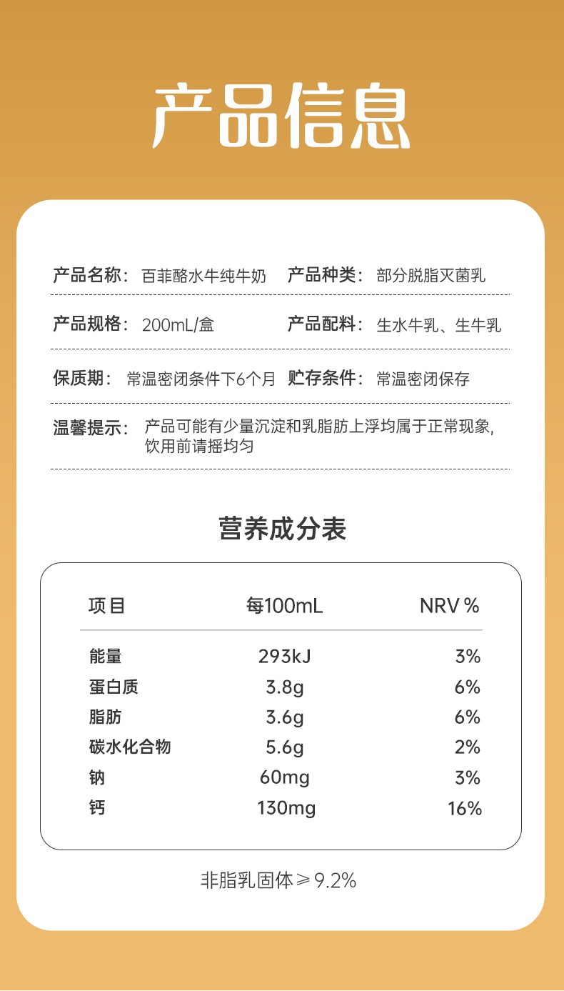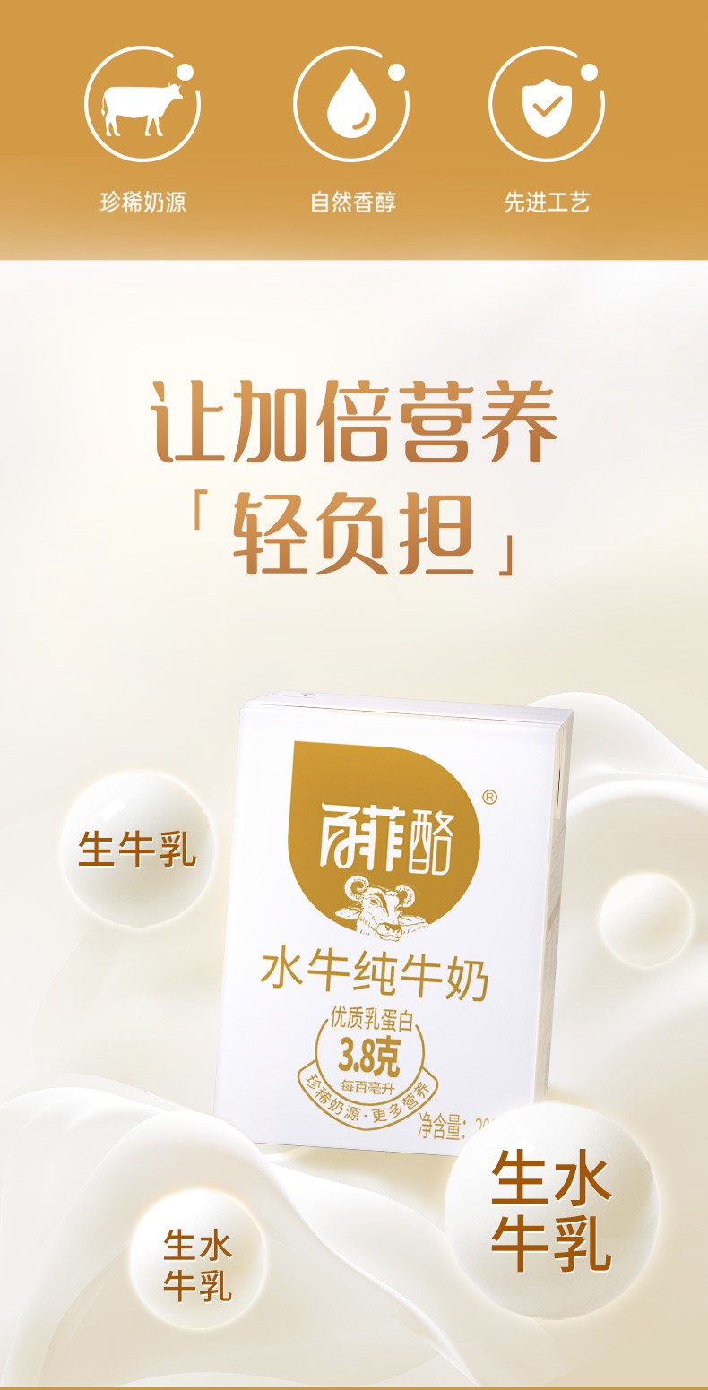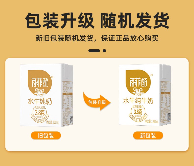 【SM】百菲酪 水牛纯牛奶 整箱学生成人营养早餐纯牛奶 200ml*20盒