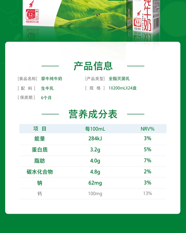 【SM】蒙牛纯牛奶尊享装 200ml*24盒