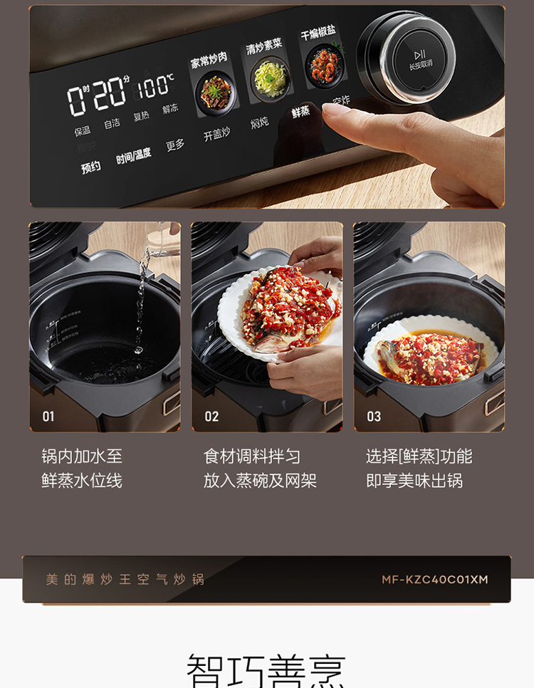 【HSJ】美的(Midea)爆炒王空气炒锅 无油煎炸锅4L 多功能空气炸锅KZC40C01XM