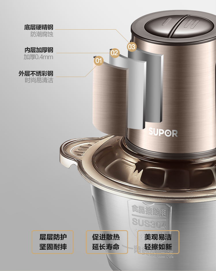 【GT】苏泊尔(SUPOR)绞肉机2升大容量 不锈钢多能料理机全自动家用电动绞馅机搅拌机碎菜机 JR18GS-300