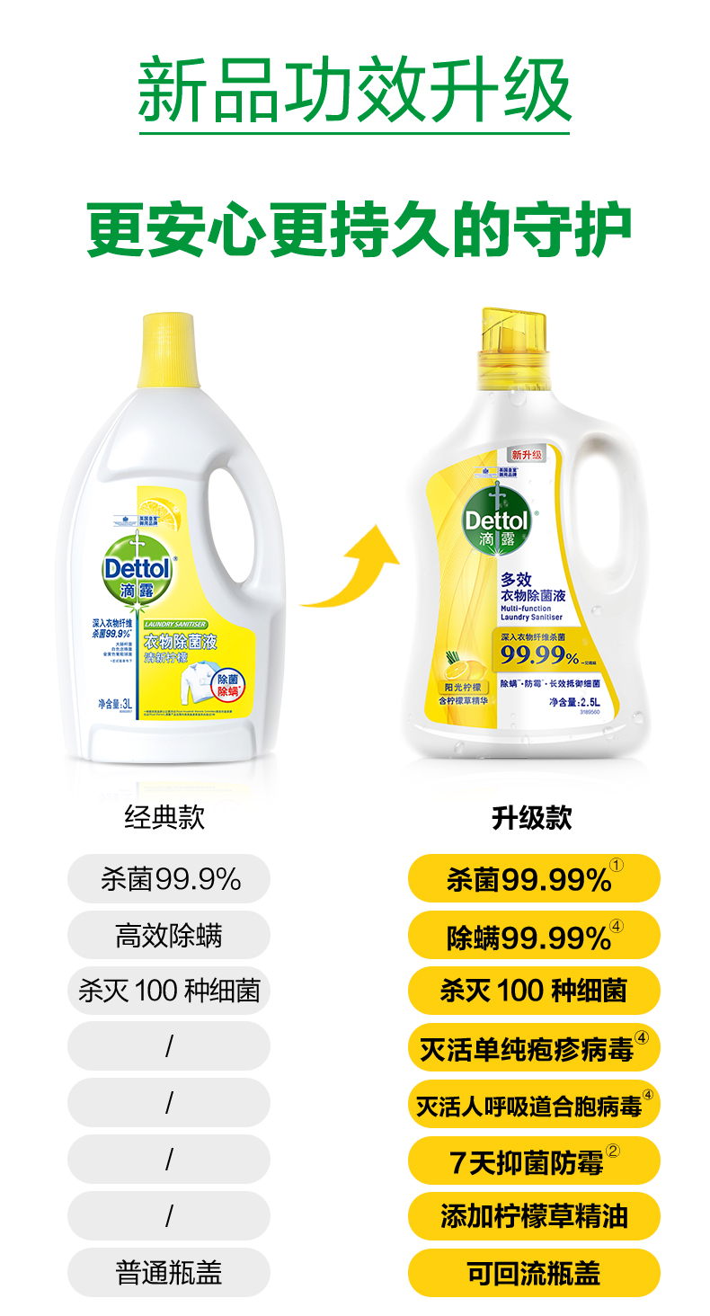 【LJ】滴露(Dettol)衣物除菌液 高效除螨 杀菌99.9% 可配消毒液洗衣液用阳光柠檬2.5L