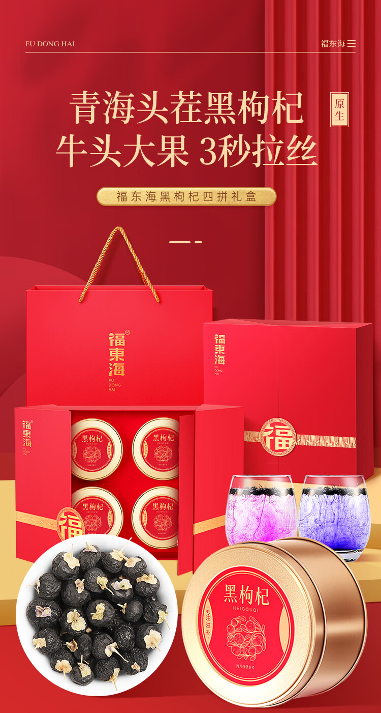 【JSJJ】福东海黑枸杞四拼礼盒(5克*12袋*4罐)